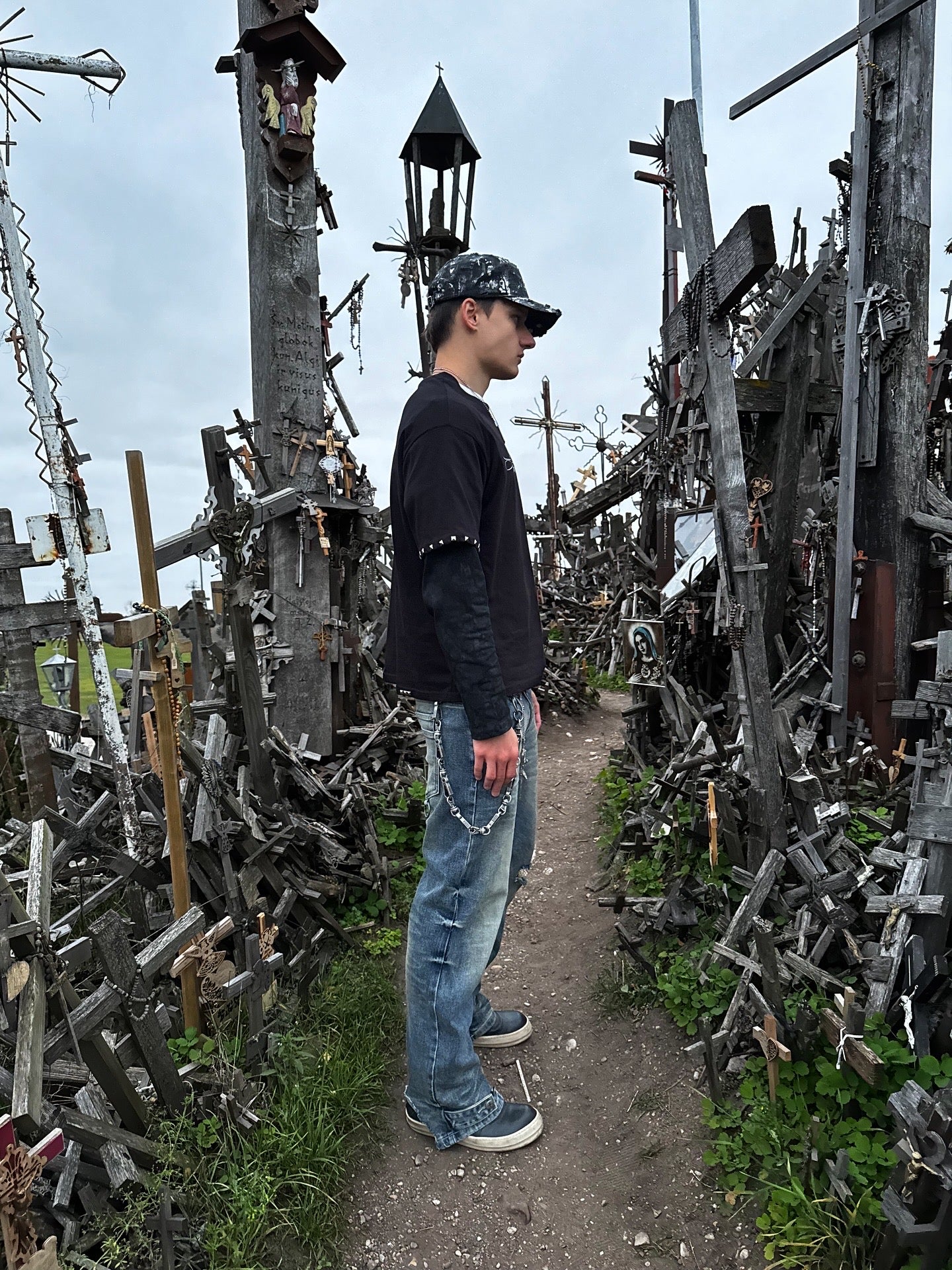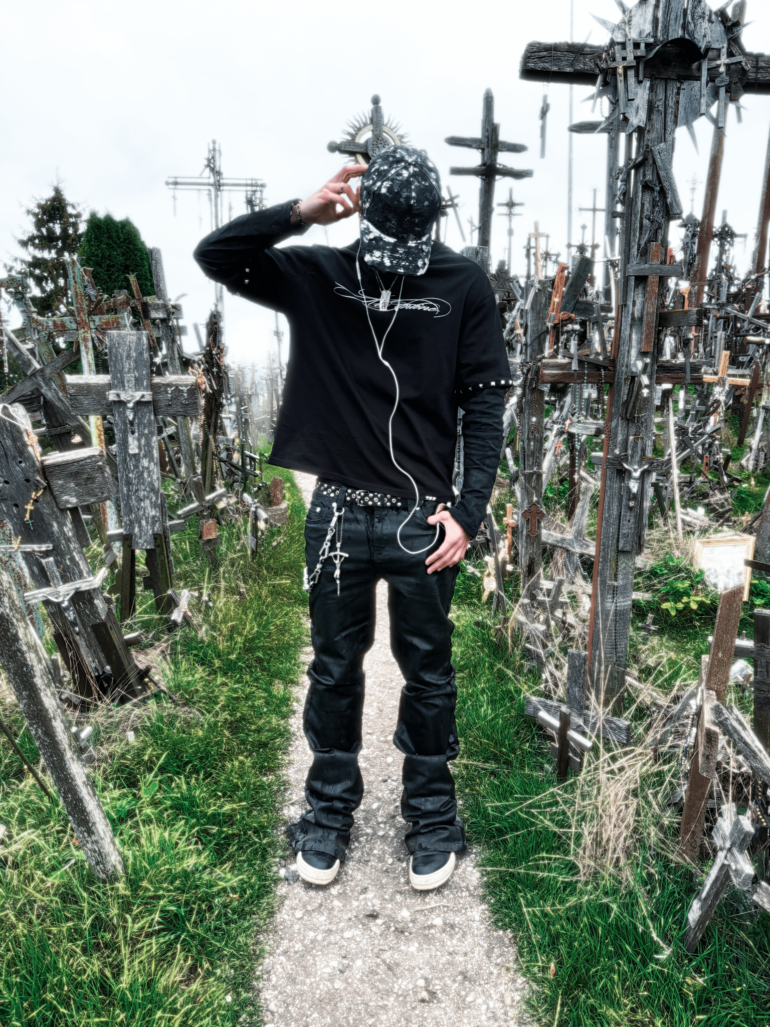 Constructed from layered cotton and coated by hand in acrylic, the Studded Double-Layered Longsleeve is more than a garment — it’s a relic of what’s left behind.